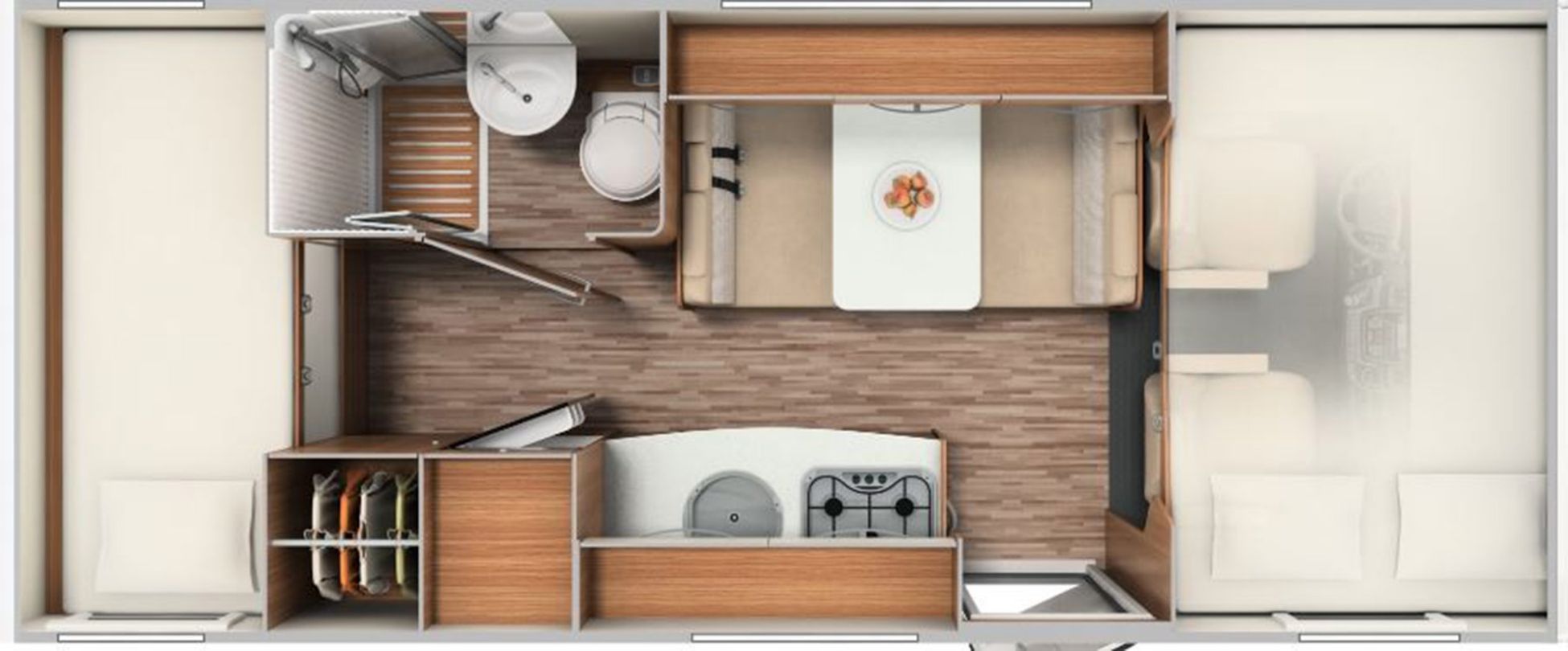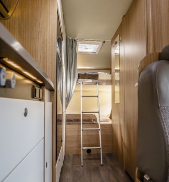 - 2 Stockbetten im Heck, unteres Bett klappbar für die Vergrößerung Stauraum